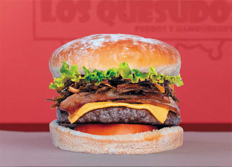 Pan hamburguesa, tomate, queso mozzarella, 2 Carnes de Res 110 g, porción de tocineta, ensalada, ripio y guarniciones al gusto. $28.000